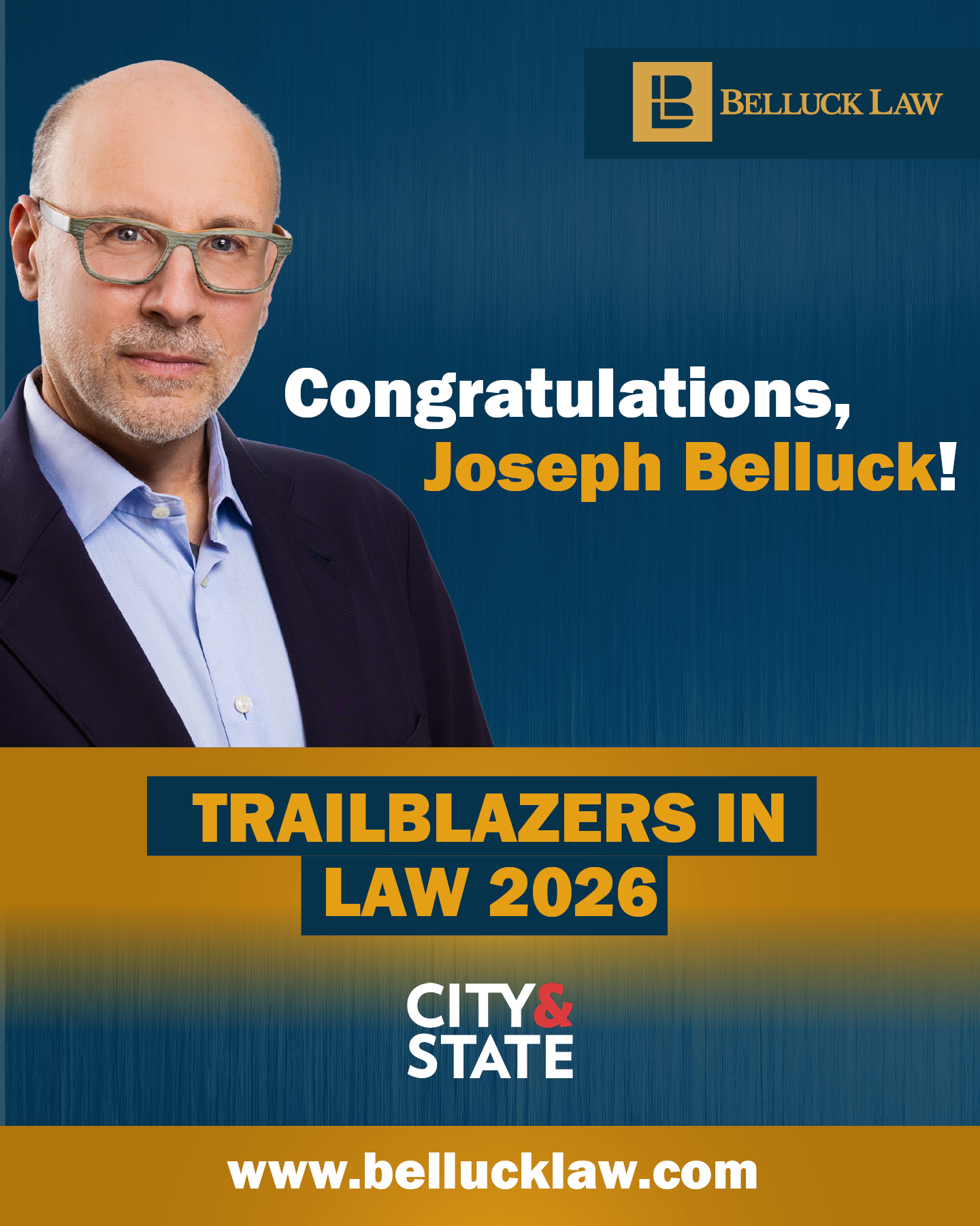 Congratulations, Joe Belluck, on your selection to the 2026 Trailblazers in Law New York State power list, recognizing New York’s legal leaders who are using their legal training to make the world a better place!